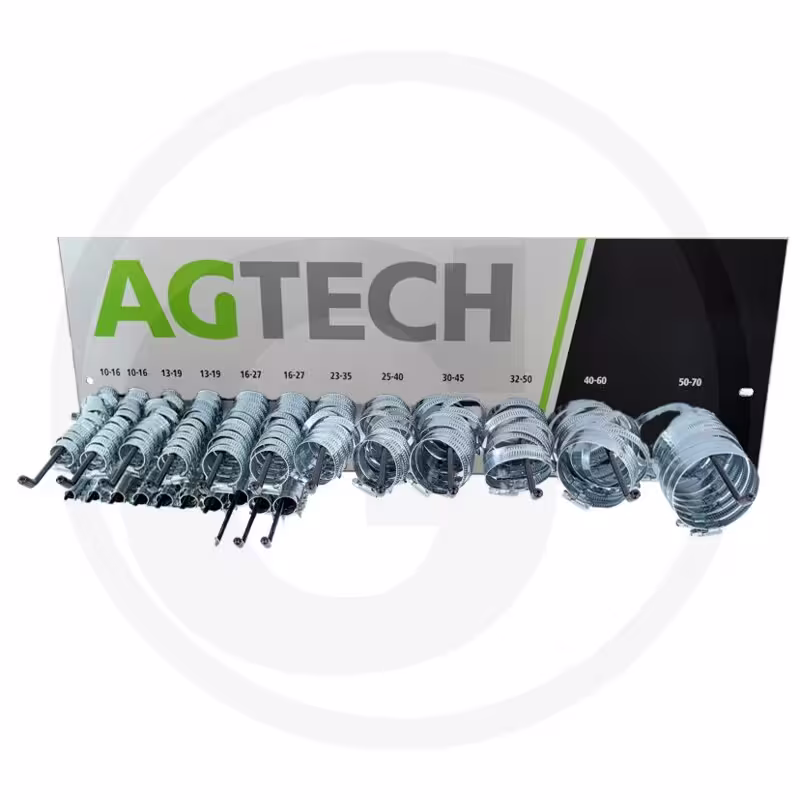 Zestaw opasek ślimakowych AGTECH to kompletne rozwiązanie dla każdego warsztatu, serwisu i gospodarstwa, ponieważ zawiera aż 220 sztuk i praktyczny wieszak. W efekcie, zapewnia on doskonałą organizację i szybki dostęp do potrzebnych rozmiarów.